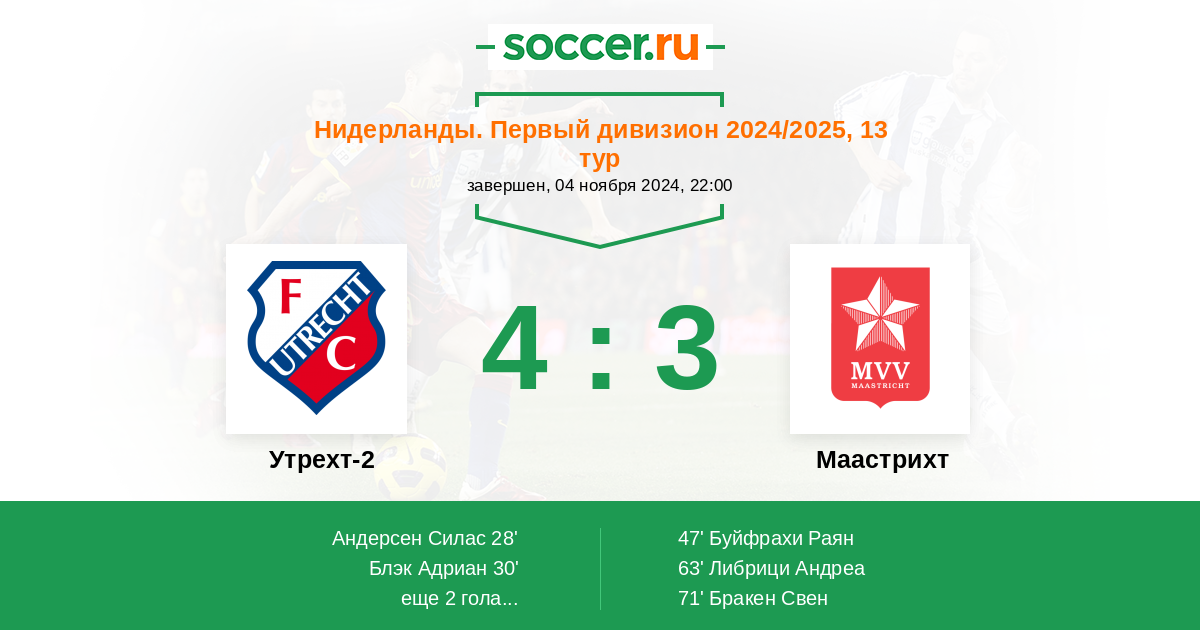 Протокол матча Утрехт-2 против Маастрихт