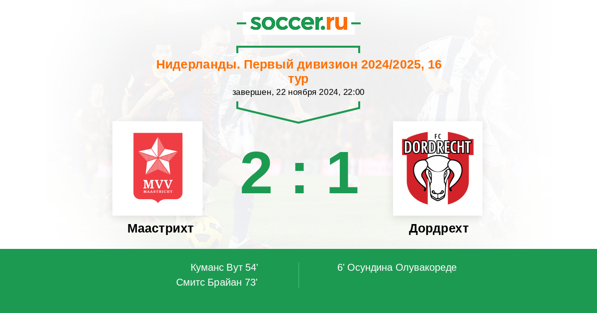 Протокол матча Маастрихт против Дордрехт