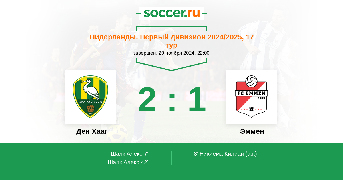 Протокол матча Ден Хааг против Эммен