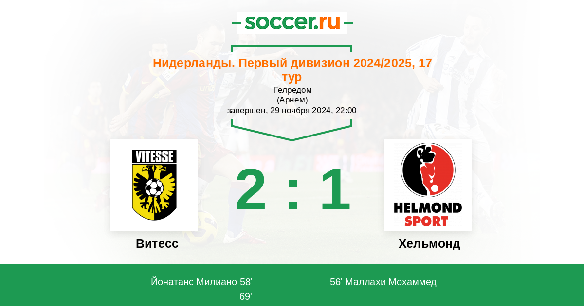 Протокол матча Витесс против Хельмонд