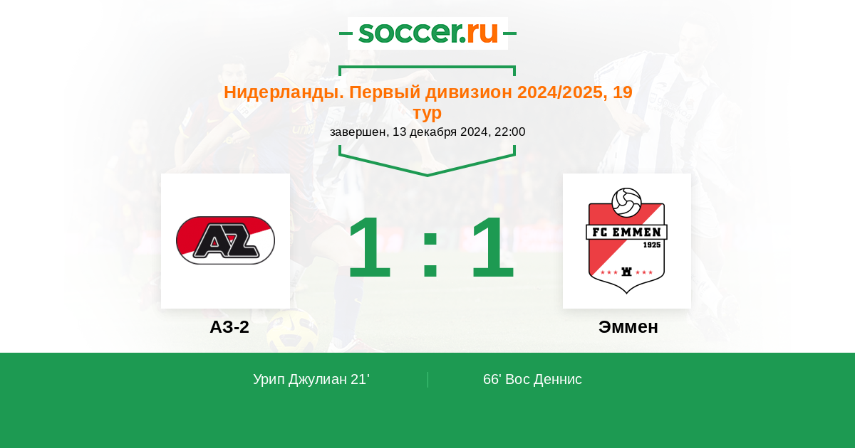 Протокол матча АЗ-2 против Эммен