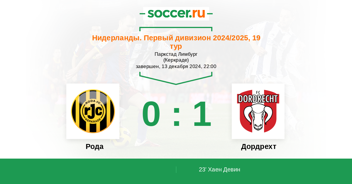 Протокол матча Рода против Дордрехт