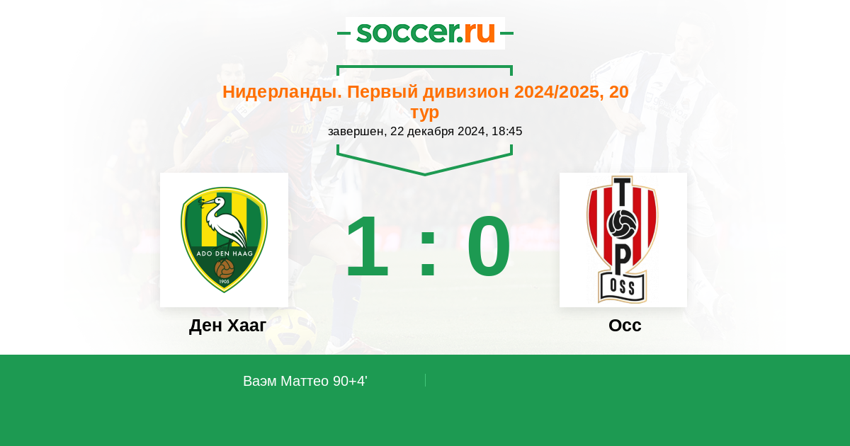 Протокол матча Ден Хааг против Осс