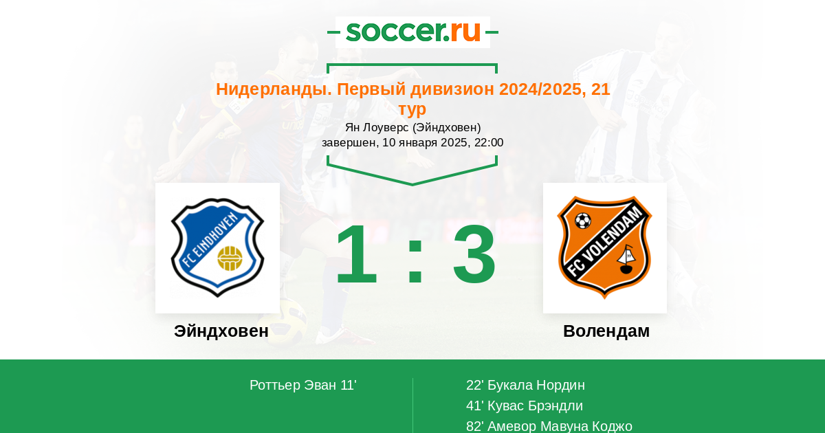 Протокол матча Эйндховен против Волендам