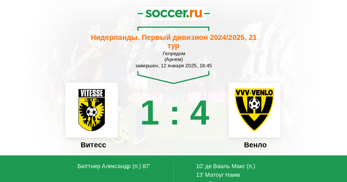 Протокол матча Витесс против Венло
