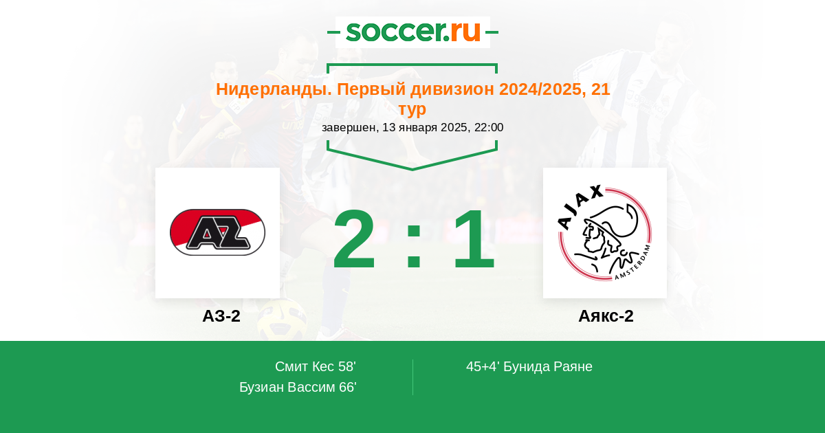 Протокол матча АЗ-2 против Аякс-2