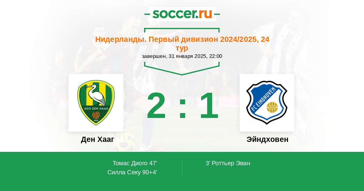 Протокол матча Ден Хааг против Эйндховен