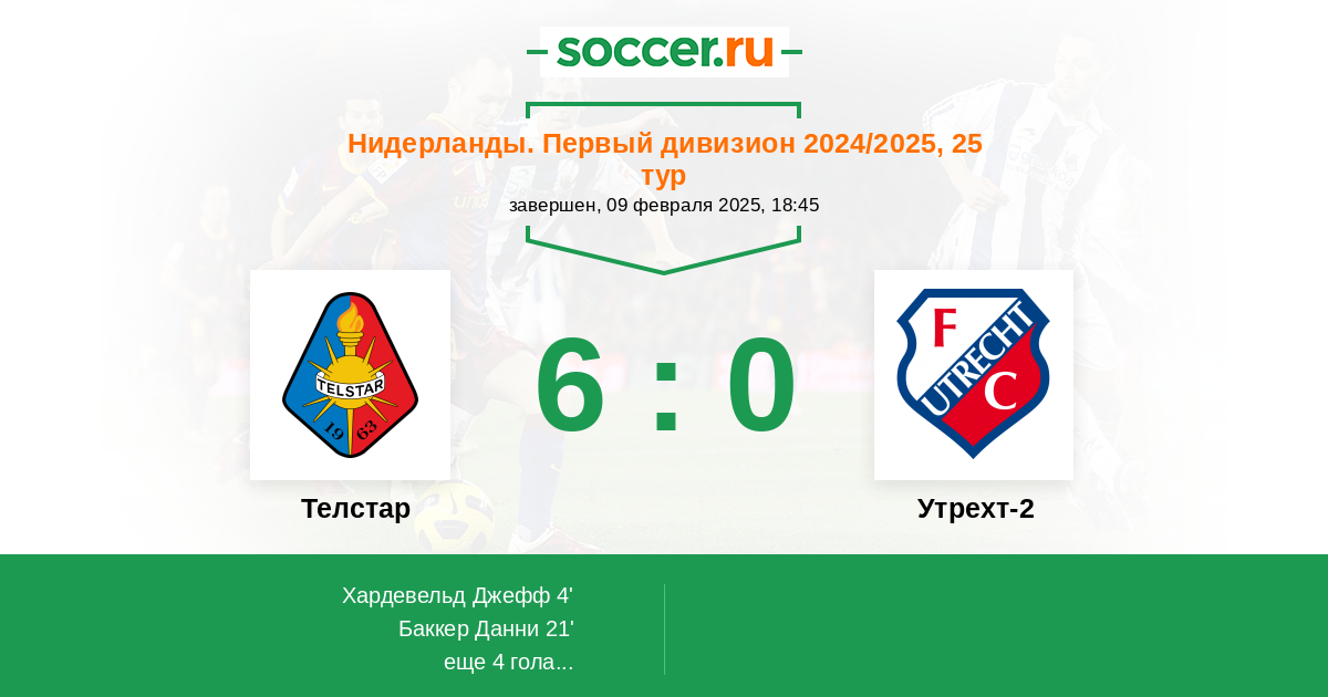 Протокол матча Телстар против Утрехт-2