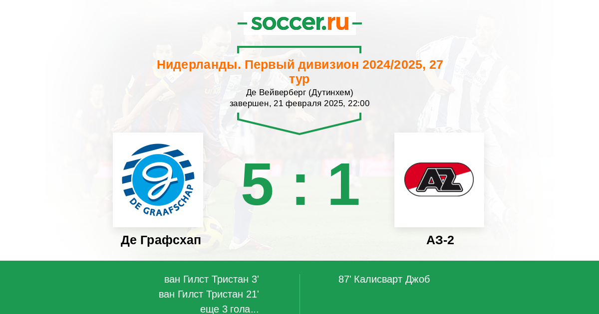 21' (2:0) ван Гилст Тристан (7) (Фортеш Джеффри (22))