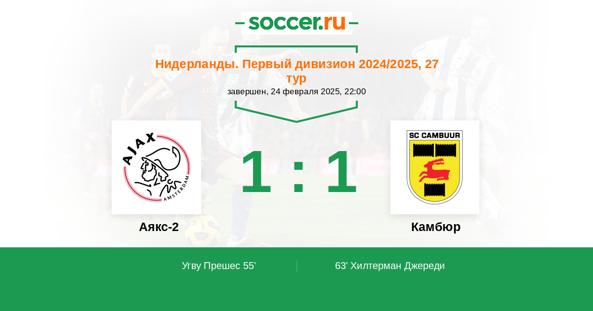Протокол матча Аякс-2 против Камбюр