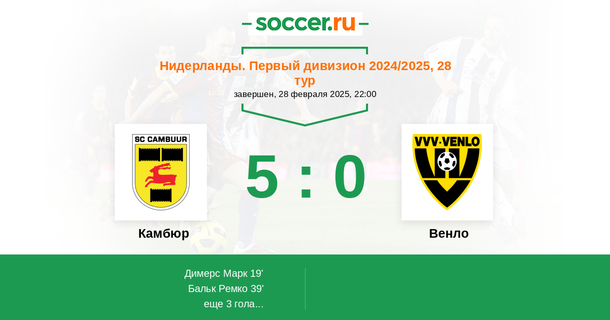 Протокол матча Камбюр против Венло