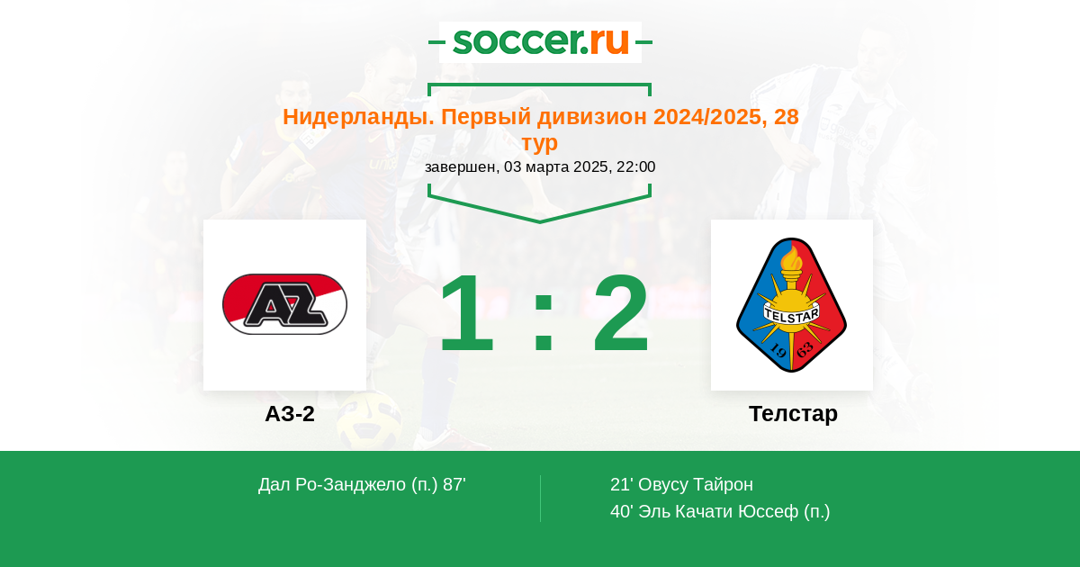 Протокол матча АЗ-2 против Телстар