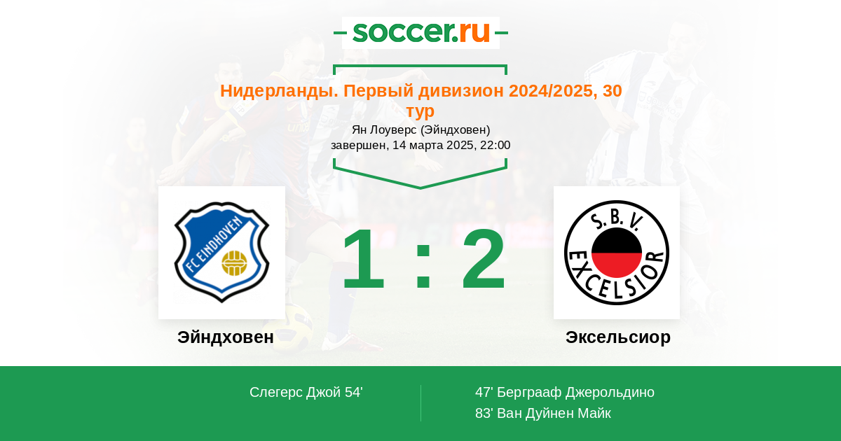 Протокол матча Эйндховен против Эксельсиор