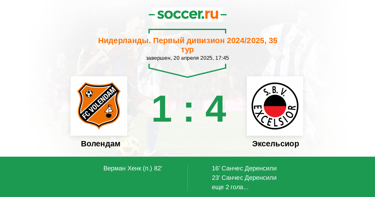 23' (0:2) Санчес Деренсили (30) (Бронкхорст Илиас (2))