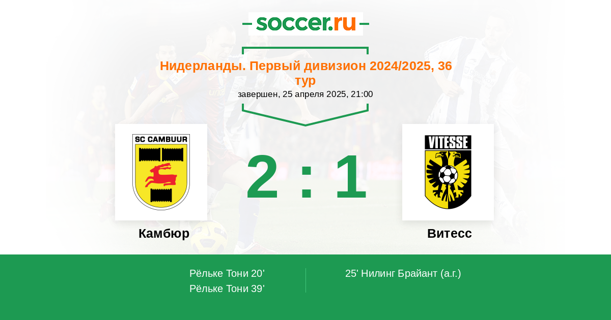 Протокол матча Камбюр против Витесс