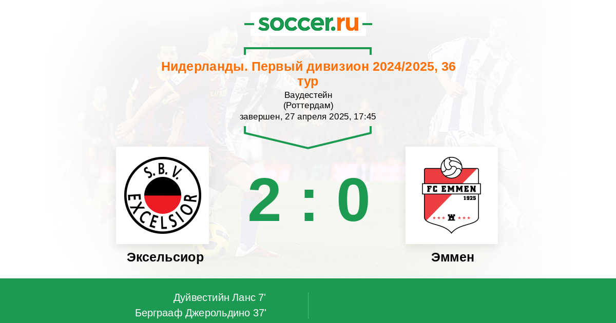 37' (2:0) Берграаф Джерольдино (33) (Дуйвестийн Ланс (10))