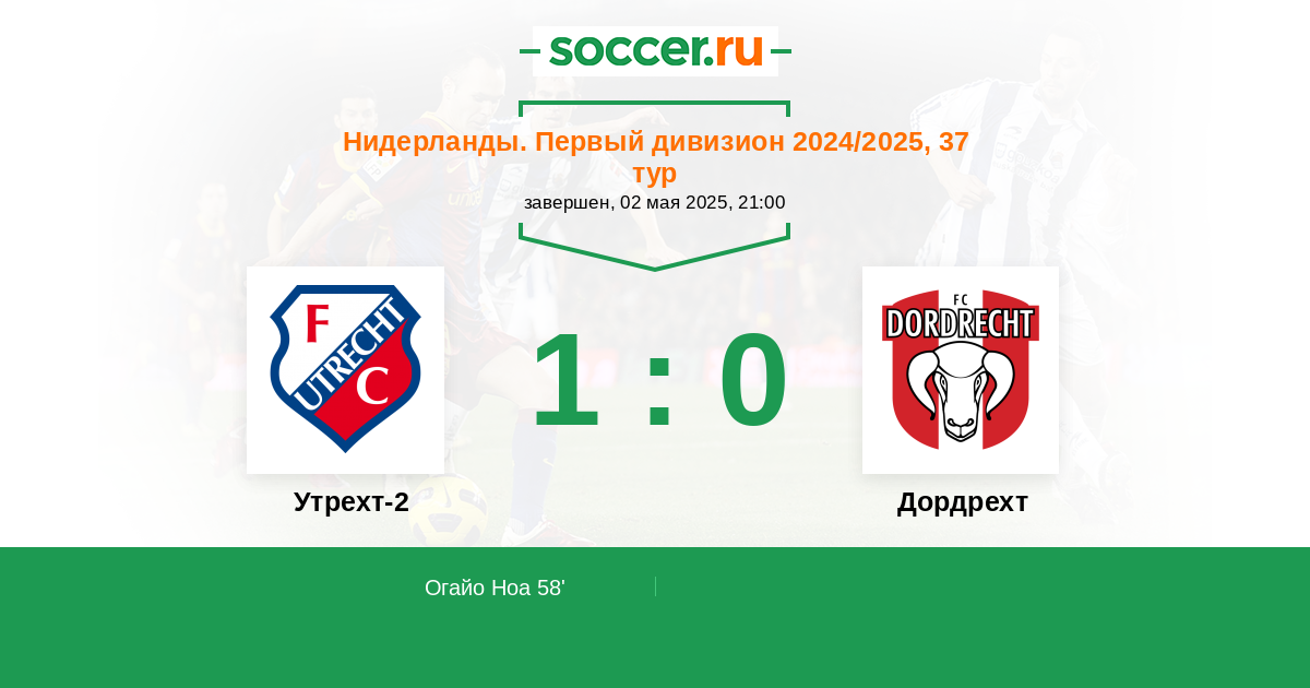 Протокол матча Утрехт-2 против Дордрехт
