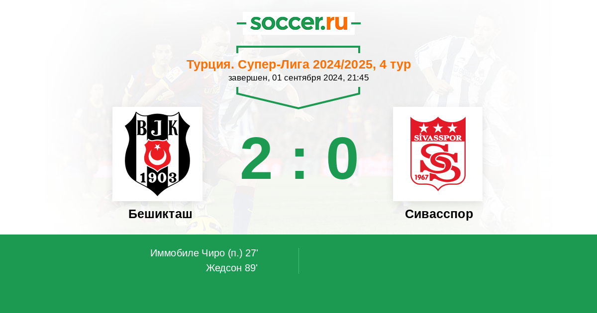 Протокол матча Бешикташ против Сивасспор