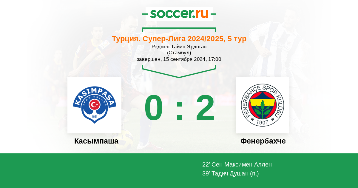 Протокол матча Касымпаша против Фенербахче