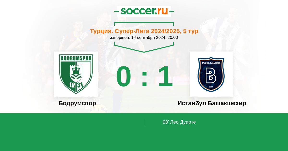 Протокол матча Бодрумспор против Истанбул Башакшехир