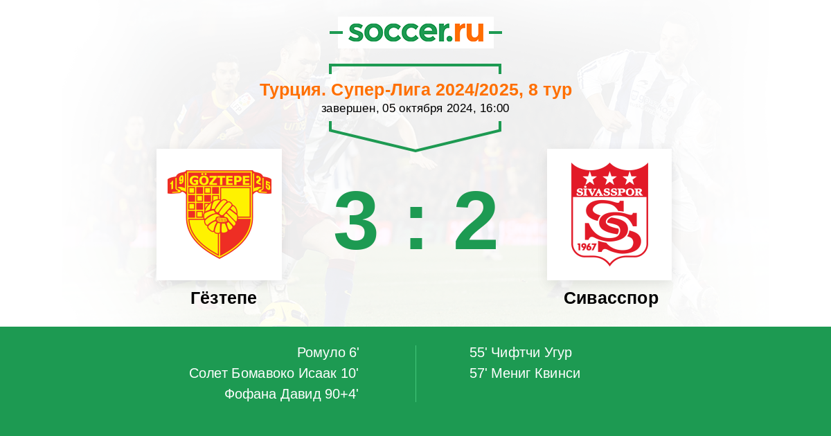Протокол матча Гёзтепе против Сивасспор