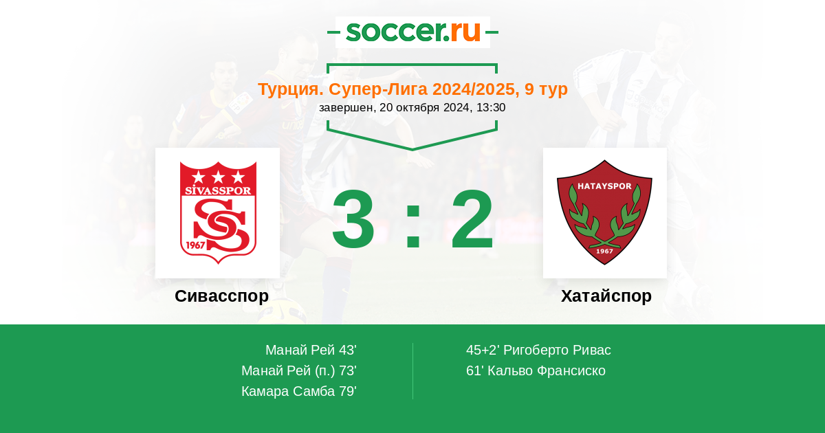 Протокол матча Сивасспор против Хатайспор