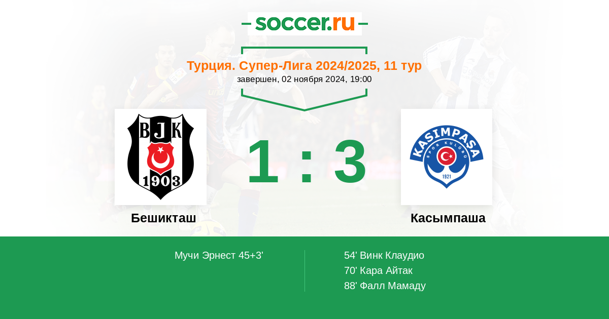Протокол матча Бешикташ против Касымпаша
