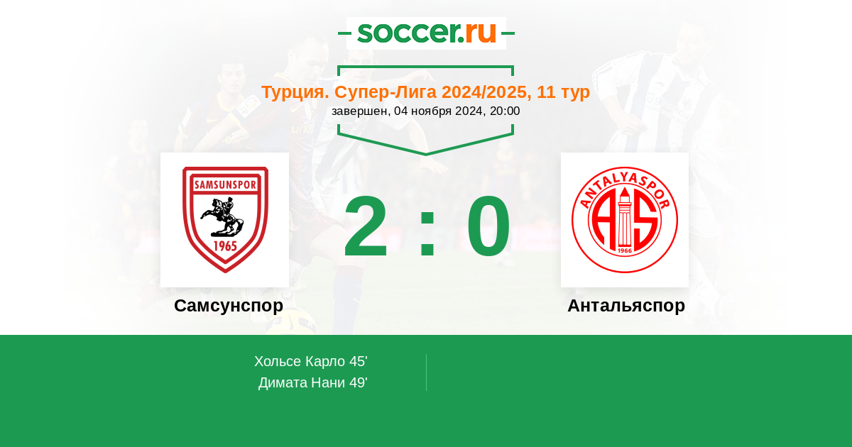 Протокол матча Самсунспор против Антальяспор