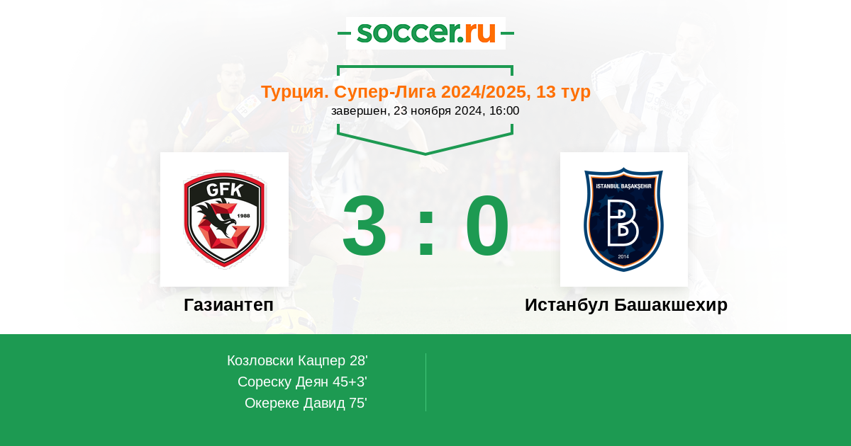 Протокол матча Газиантеп против Истанбул Башакшехир