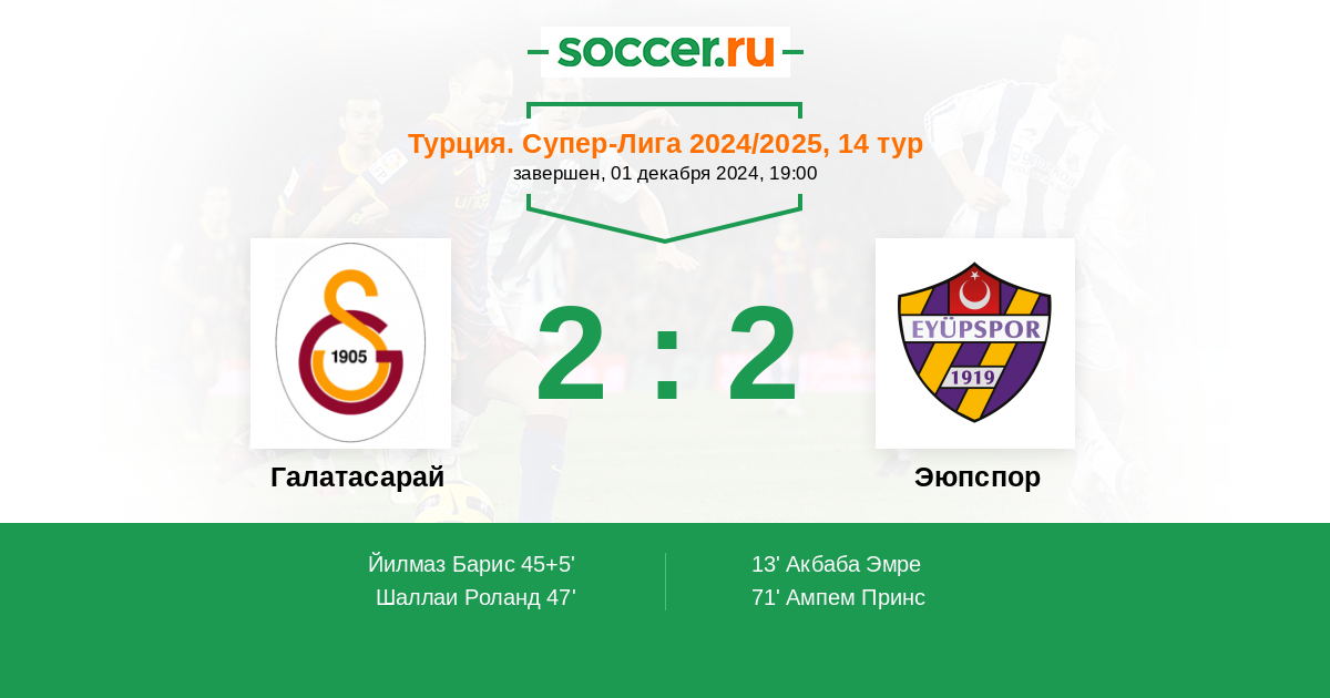 Протокол матча Галатасарай против Эюпспор