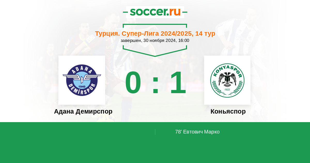 Протокол матча Адана Демирспор против Коньяспор