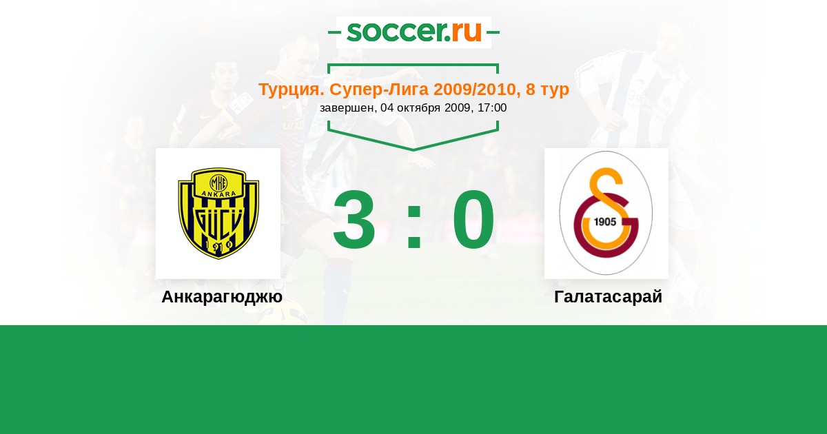 Турция. Суперлига 17.10.2010 Галатасарай Логотип футбольный клуб Галатасарай (Стамбул) 2:4 Логотип футбольный клуб Анкарагюджю Анкарагюджю