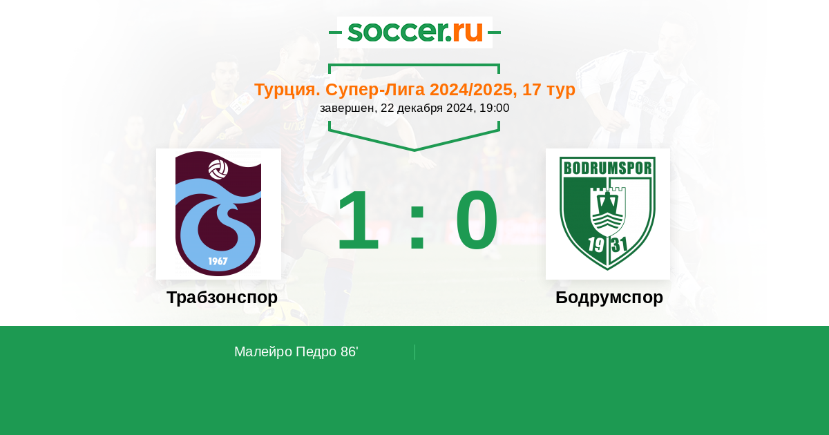 Протокол матча Трабзонспор против Бодрумспор