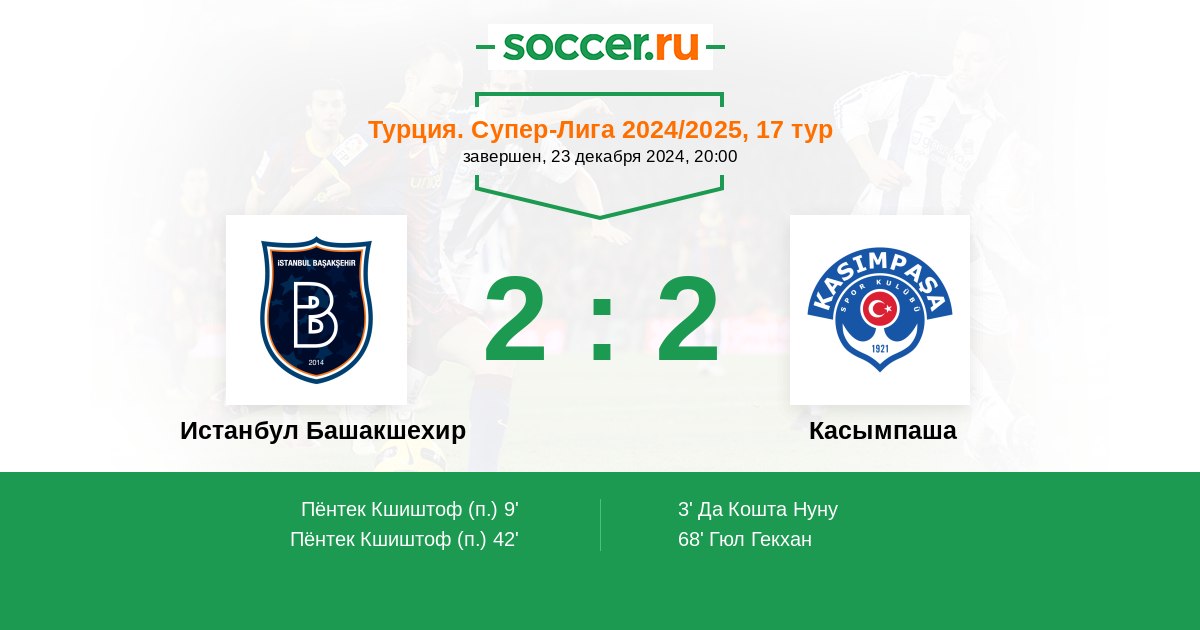 Протокол матча Истанбул Башакшехир против Касымпаша