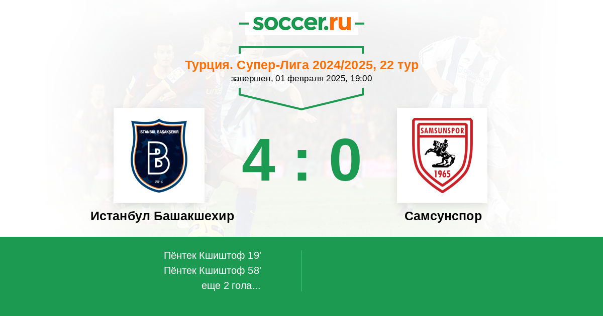 Протокол матча Истанбул Башакшехир против Самсунспор