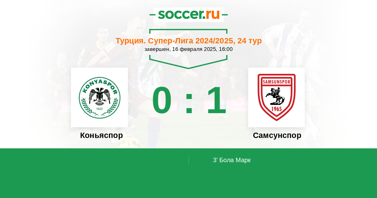 Протокол матча Коньяспор против Самсунспор