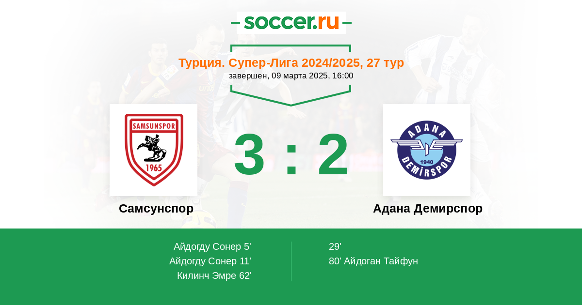 62' (3:1) Килинч Эмре (11) (Явру Зеки (18))