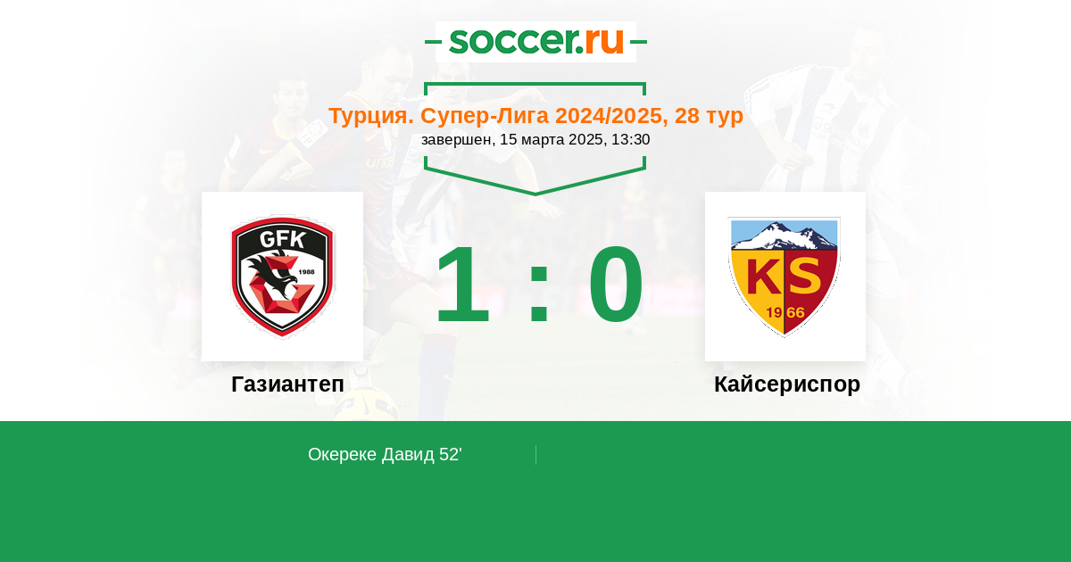 Протокол матча Газиантеп против Кайсериспор