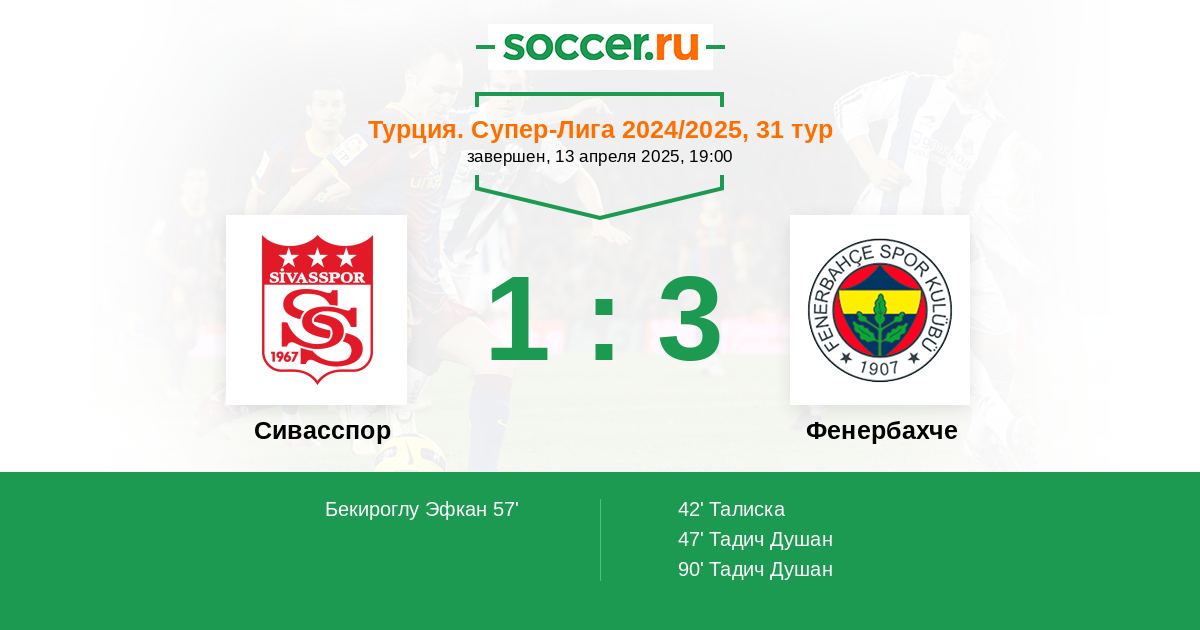 Протокол матча Сивасспор против Фенербахче