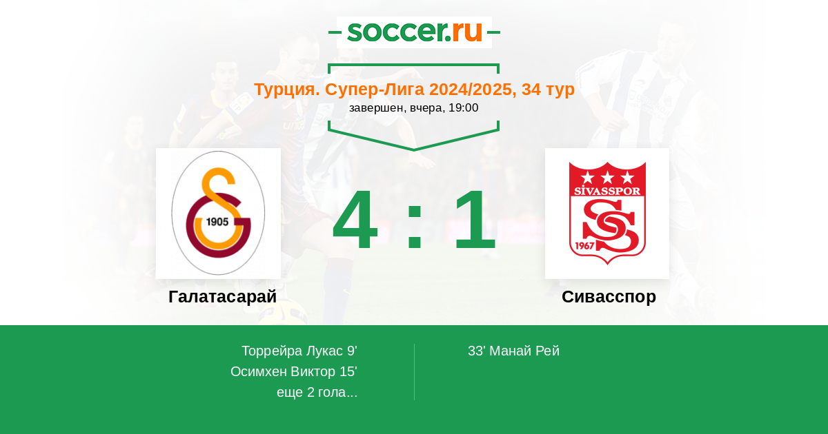 Протокол матча Галатасарай против Сивасспор