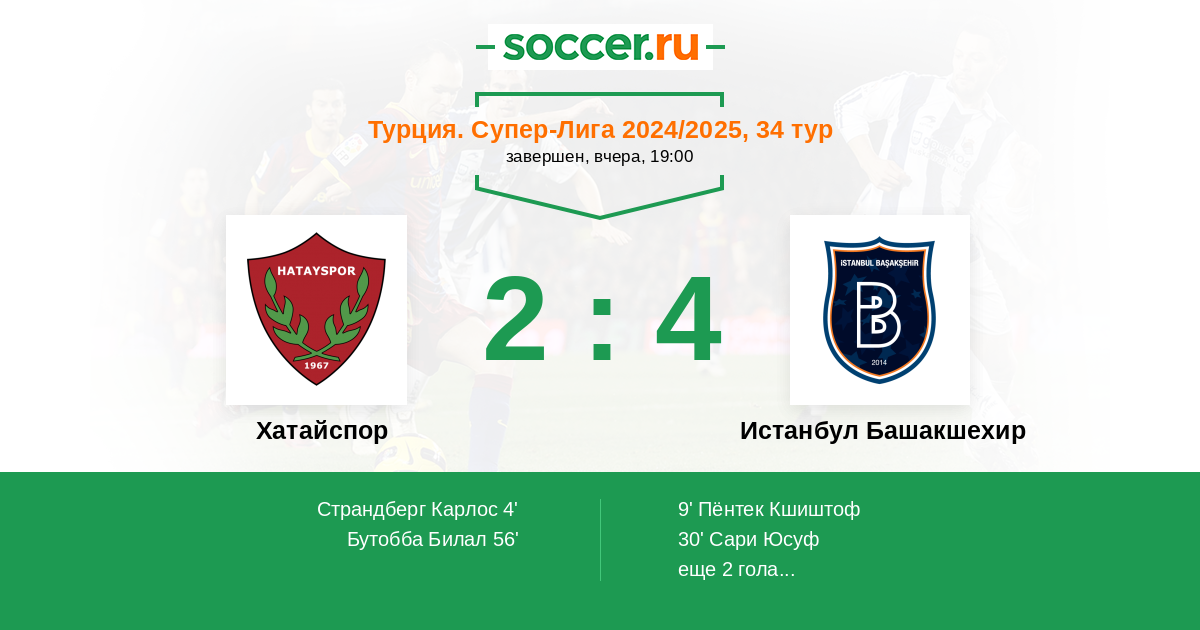 Протокол матча Хатайспор против Истанбул Башакшехир