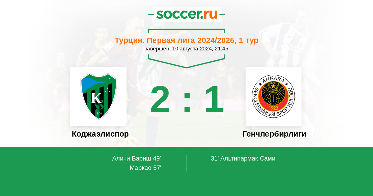 Протокол матча Коджаэлиспор против Генчлербирлиги