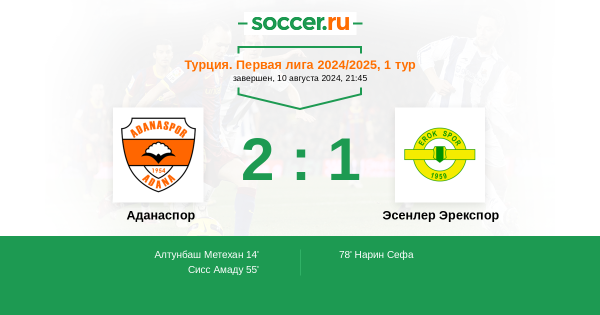 Протокол матча Аданаспор против Эсенлер Эрекспор