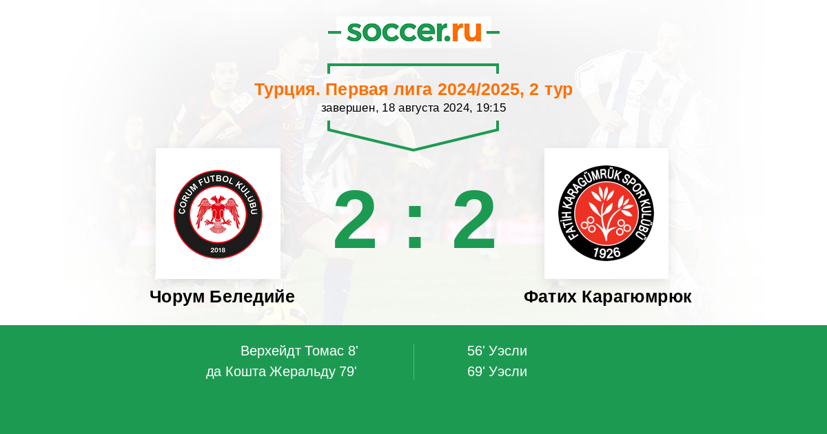 Протокол матча Чорум Беледийе против Фатих Карагюмрюк