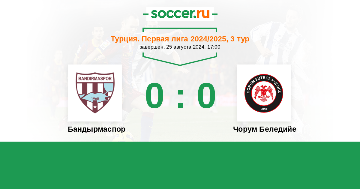 Протокол матча Бандырмаспор против Чорум Беледийе