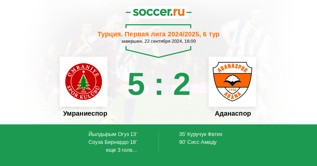 Протокол матча Умраниеспор против Аданаспор