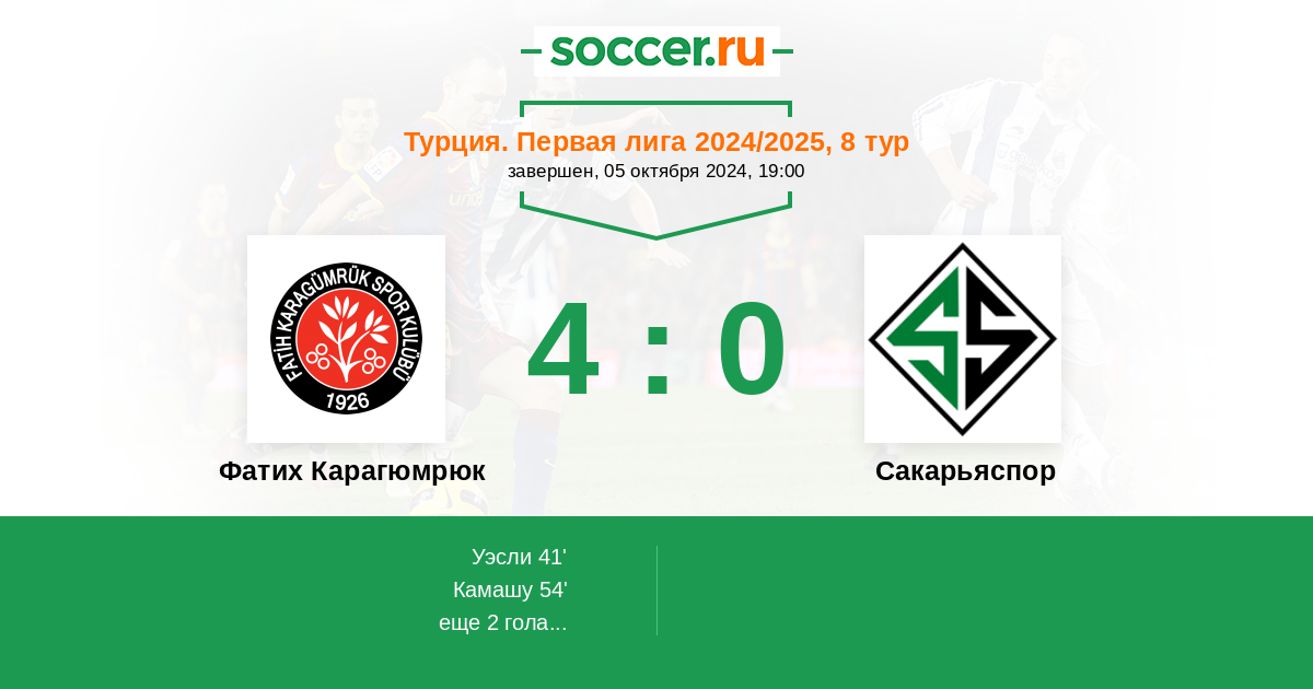 Протокол матча Фатих Карагюмрюк против Сакарьяспор
