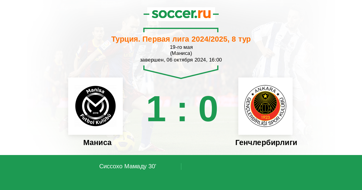 Протокол матча Маниса против Генчлербирлиги