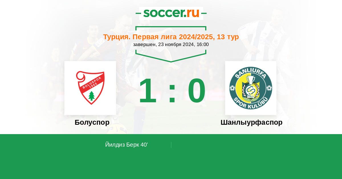 40' (1:0) Йилдиз Берк (7) (Хюсаметтин Йенер (52))