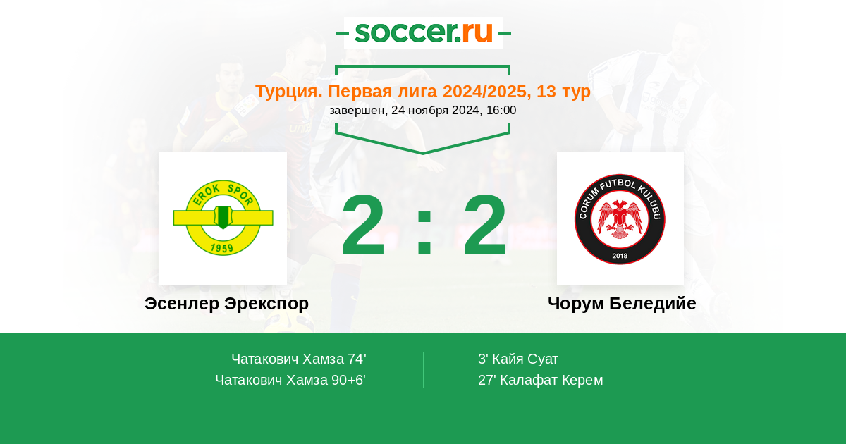Протокол матча Эсенлер Эрекспор против Чорум Беледийе